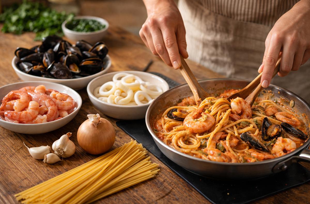 Espagueti a la marinera rápido y fácil: un plato delicioso con todo el sabor del mar para disfrutar en casa.