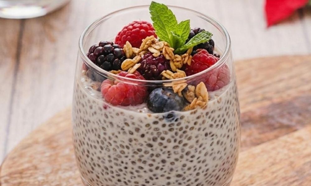 Receta de pudín de yogur y chía rico en fibra
