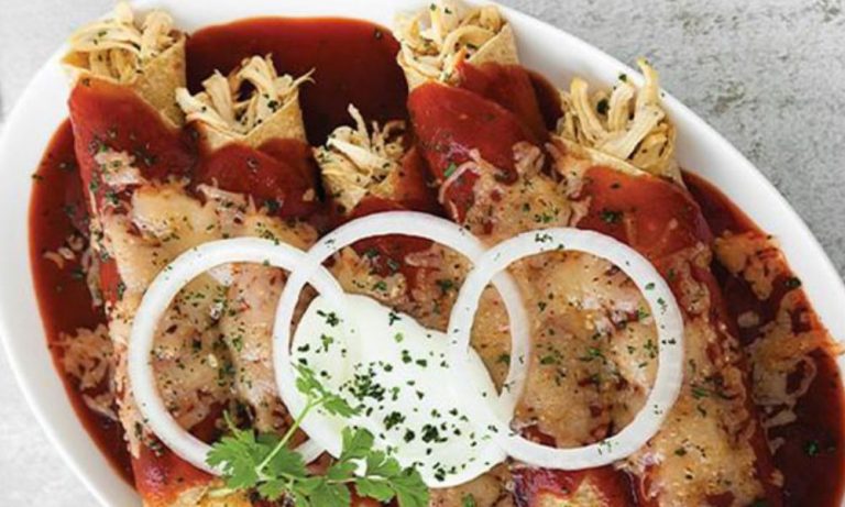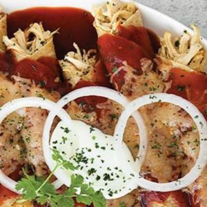 Una opción sustanciosa que combina la jugosidad del pollo desmenuzado con la intensidad de la salsa roja. Estas enchiladas son perfectas para una comida completa y nutritiva sin gastar mucho, aprovechando incluso restos de pollo que tengas en casa.