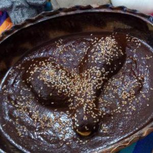 Forma parte de uno de los siete moles que se elaboran en el estado de Oaxaca. Su pasta está hecha a base de chiles, cacao, ajonjolí y almendra