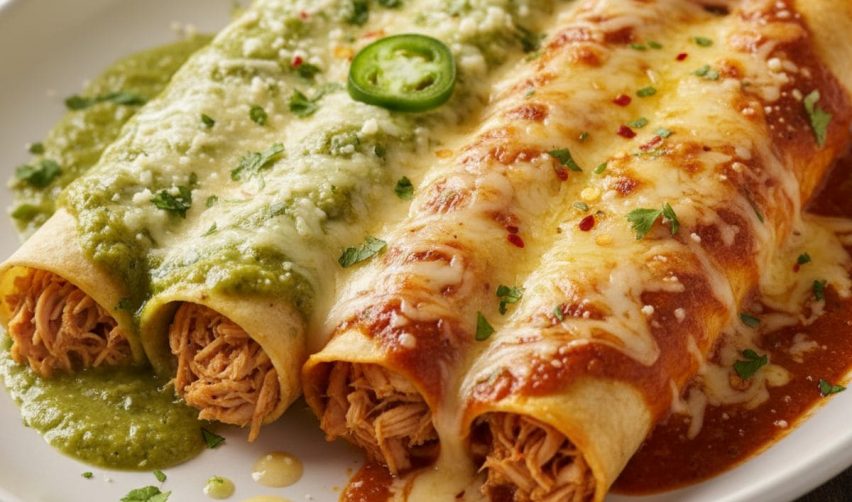Descubre cómo las enchiladas suizas divorciadas combinan lo mejor de dos mundos en un solo bocado que hará explotar tus sentidos con sabores auténticamente mexicanos.