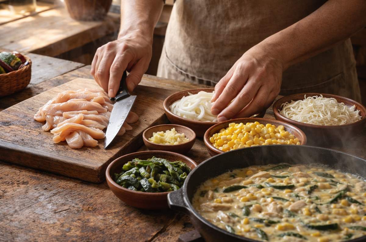 Aprende a preparar pollo con rajas con crema con esta receta casera fácil. ¡Cremoso, sabroso y perfecto para compartir en familia cualquier día!