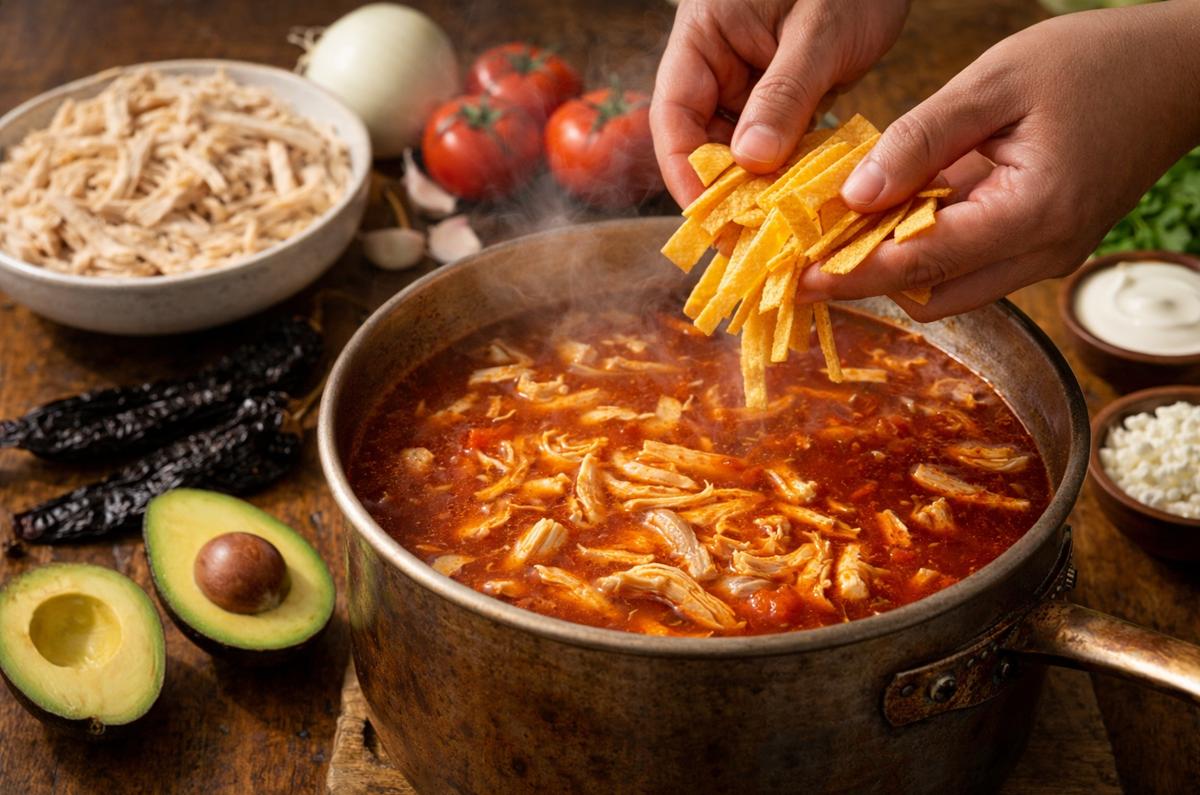 Convierte tu comida en un momento especial con esta sopa de tortilla con pollo: práctica, sabrosa y lista en pocos pasos.