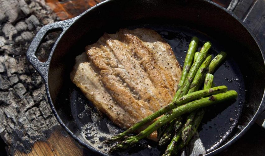 Cocinar pescado en una sartén de hierro fundido es menos un problema de pegarse y tiene más que ver con qué tan hábil cocinero seas. Foto: Cocina Vital