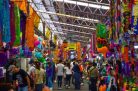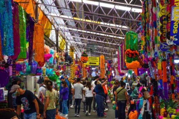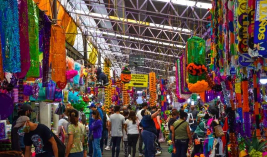 El Mercado de Jamaica vestido de colores previo a Día de Muertos..