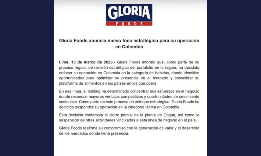 Además, también desaparece Lechesan, otra marca tradicional que producía lácteos desde 1971 en Santander. Ambas marcas fueron adquiridas por el Grupo Gloria en años anteriores. Ahora, tras 14 años de operación bajo la bandera peruana, llega el adiós definitivo. La compañía justificó su decisión como parte de una “reestructuración estratégica” para concentrarse en negocios más rentables.
