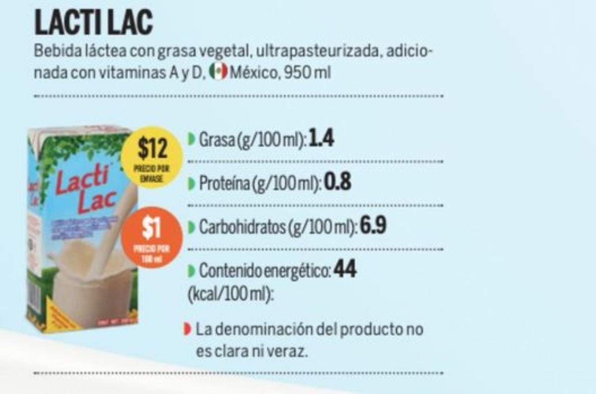 La Profeco detectó que su denominación y etiquetado pueden inducir a error, ya que dan la impresión de que se trata de leche, cuando en realidad corresponde a un producto lácteo combinado o imitación. Esta situación contraviene las normas vigentes y afecta directamente la decisión de compra, sobre todo en familias que buscan leche como alimento básico.