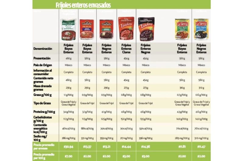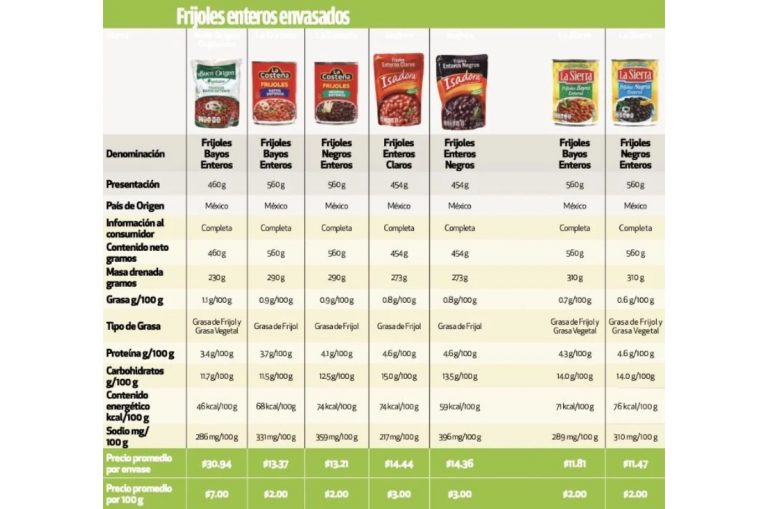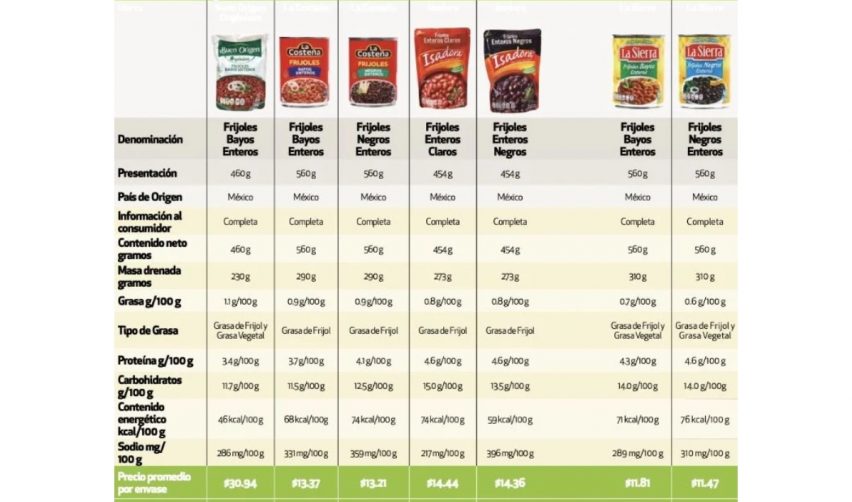 La Profeco advierte sobre marcas de frijoles refritos y enteros con exceso de grasa y bajo contenido de proteína.