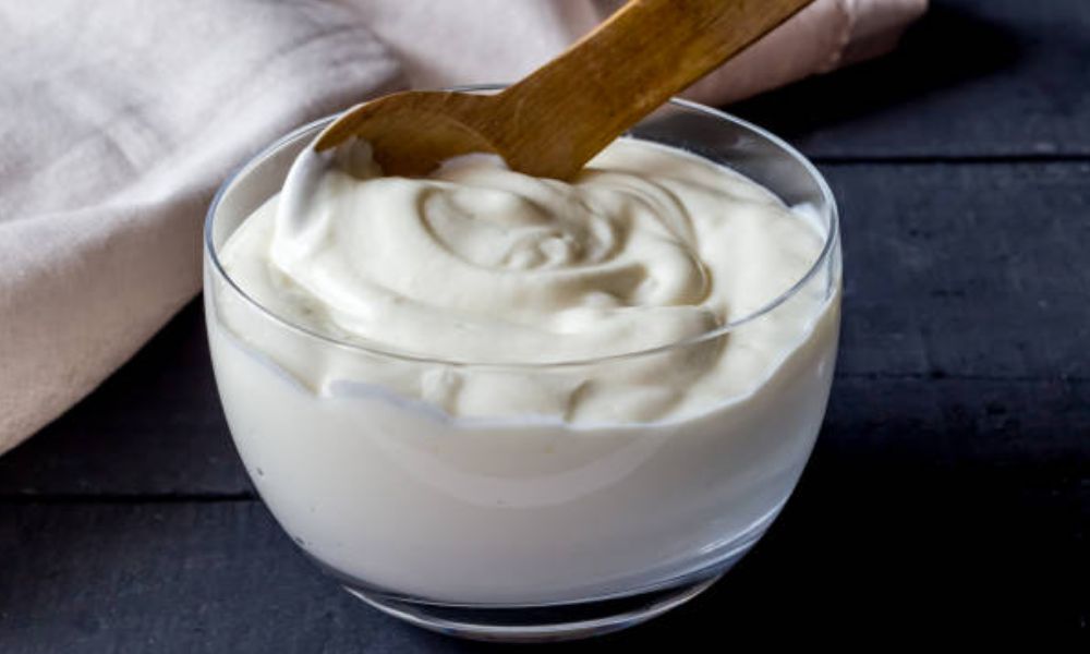 - Coloca el yogur natural en un recipiente pequeño y no metálico.