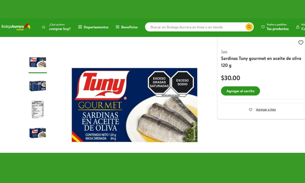 Actualmente, puedes adquirir las sardinas Tuny Gourmet en aceite de oliva en Bodega Aurrerá por tan solo $30 pesos. Esta cadena comercial ofrece opciones de compra presencial y en línea, con servicio de entrega a domicilio disponible.