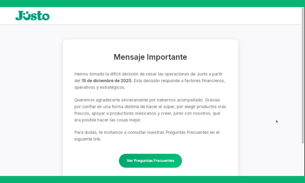 En caso de no poder completar algún pedido, Jüsto notificará a los usuarios afectados y procederá con los reembolsos correspondientes. Para consultas adicionales, habilitaron una sección de Preguntas Frecuentes en su portal y el correo electrónico ayuda@justo.mx