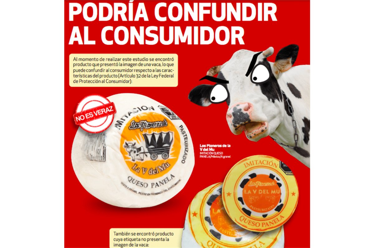 Otro punto crítico señalado por Profeco es el uso de imitaciones de queso panela que no cumplen con la normativa vigente. Un caso claro es el de Los Pioneros de la V del Mu, cuyos productos a granel llegaron a mostrar en su empaque la imagen de una vaca, lo que podía inducir al consumidor a pensar que se trataba de un queso auténtico.