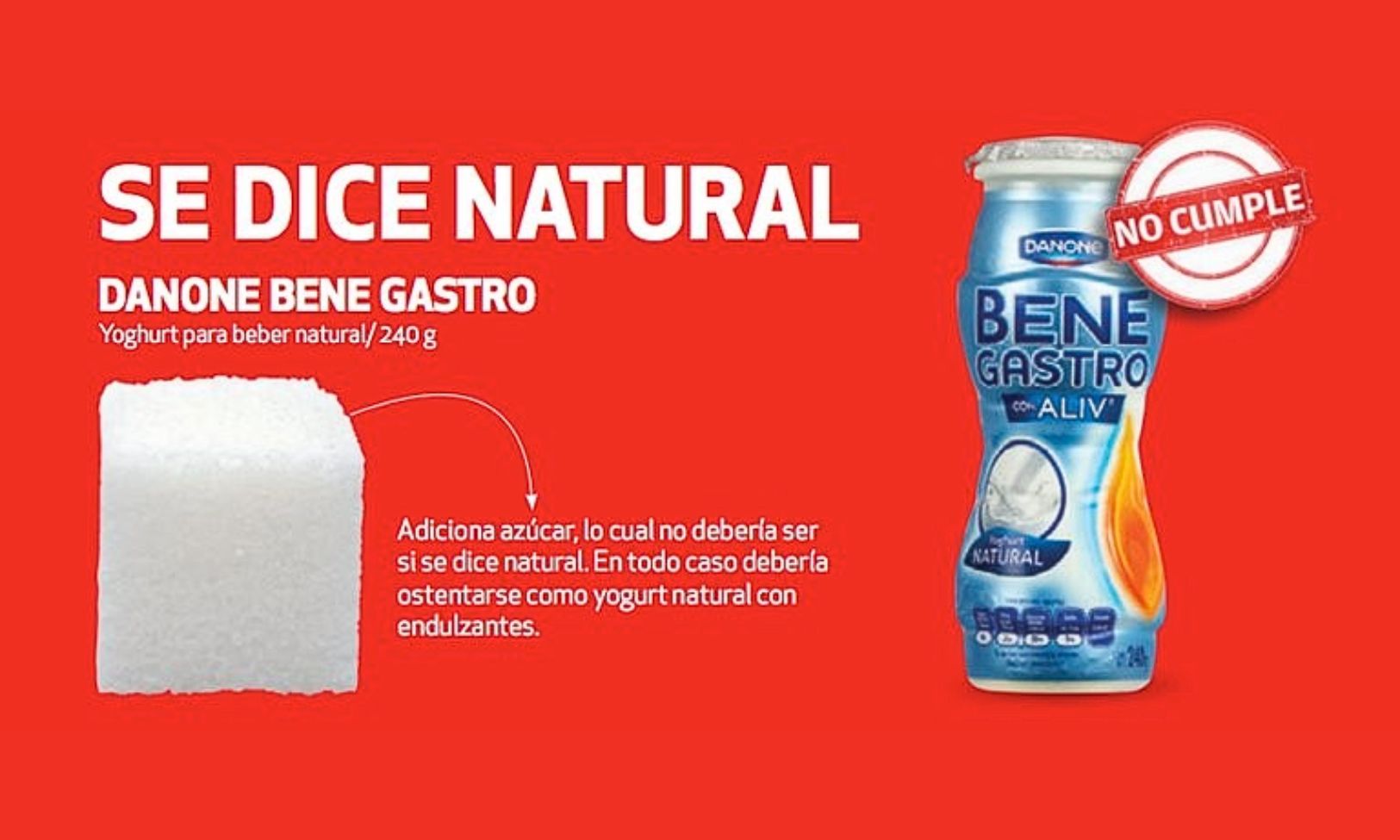 - Danone Bene Gastro Yogurt para beber natural 240 g: se anuncia como natural, pero añade azúcar, lo que no debería ocurrir. Te recomendamos este video