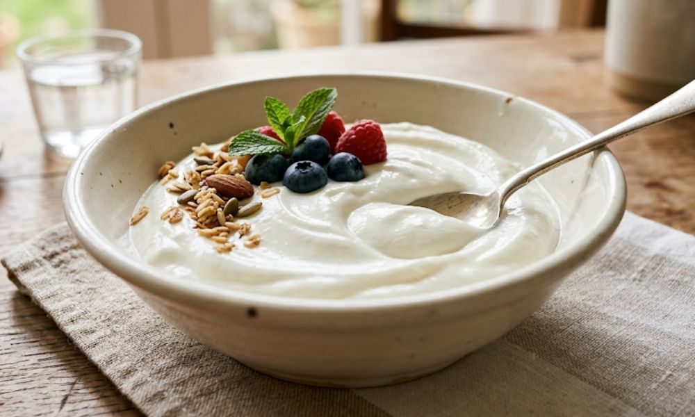 Aunque el yogur griego tiene mayor contenido de grasa, su versión artesanal y sin azúcares añadidos puede ser beneficiosa para la digestión. Su proceso de filtrado concentra nutrientes, aportando energía y proteínas que ayudan a mantener el cuerpo activo.
