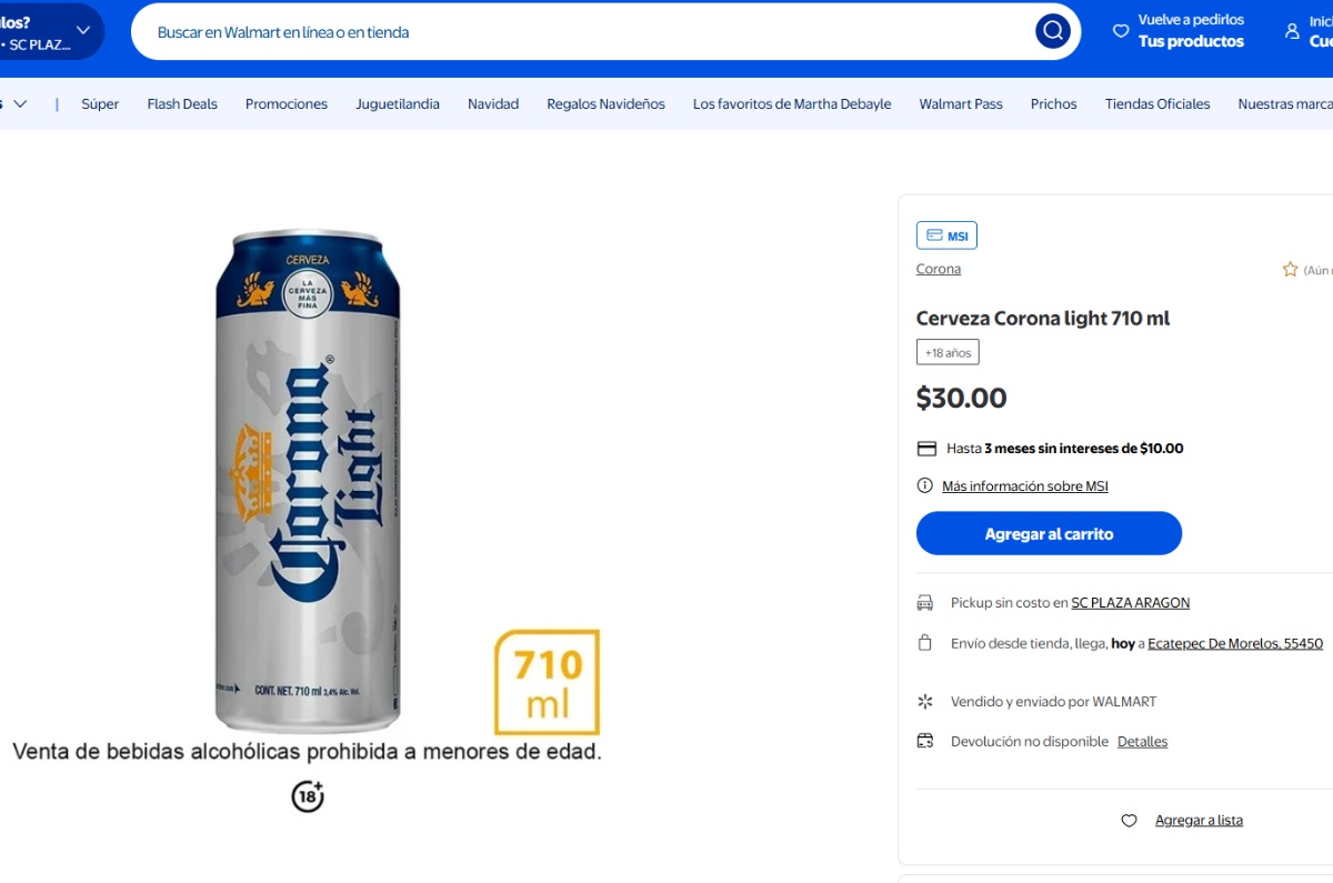 - Precio por paquete (12 latas): $208 pesos