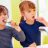 Niño y niña lavando sus dientes