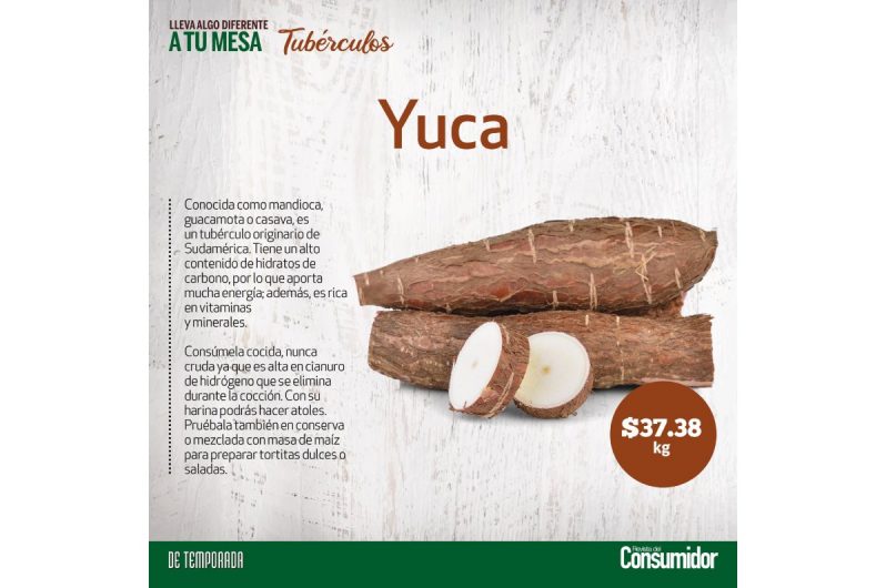Este superalimento, conocido en México como guacamote, recibe el nombre tradicional de yuca. Foto: Revista del Consumidor