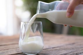 Jarra sirviendo leche en un vaso