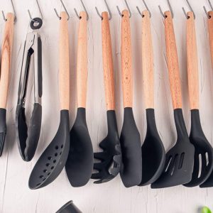 utensilios de cocina de plástico negro
