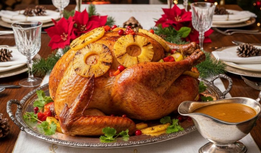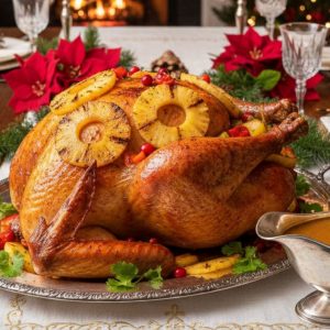 Esta jugosa receta de pavo a la hawaiana fusiona lo mejor de dos mundos: la tradición festiva con un irresistible toque tropical que conquistará a todos tus invitados.