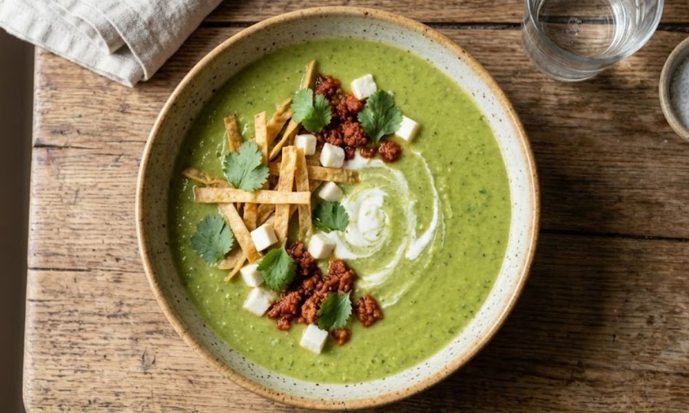 • Otra opción deliciosa es agregar tiras de tortilla fritas para darle un toque crujiente, o incluso chorizo frito desmoronado si buscas una versión más sustanciosa. Estas guarniciones transformarán tu crema en un platillo digno de restaurante.